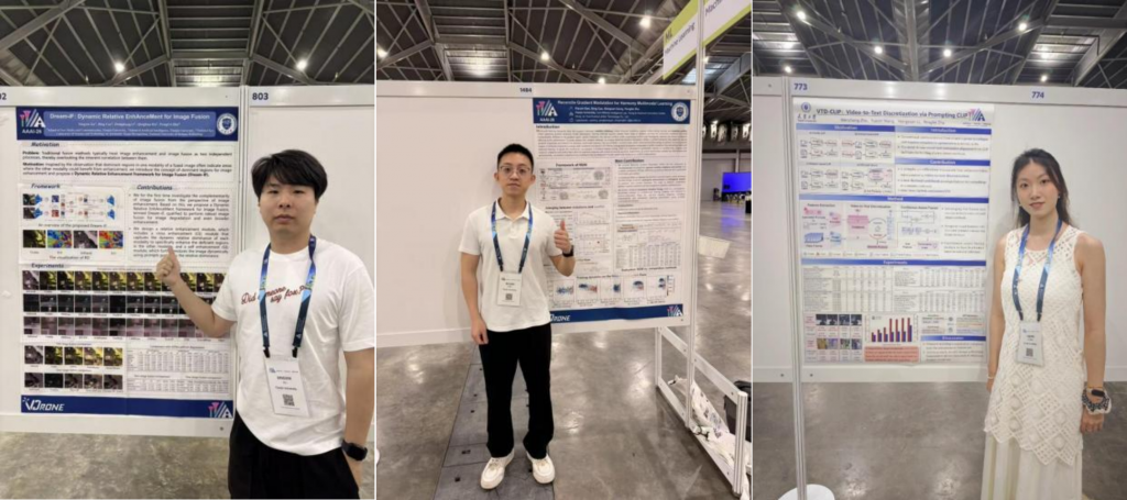 会议期间,团队在海报展示环节安排成员值守展位,与参会学者交流论文的研究动机、方法设计、实验设置与结果表现,并就相关问题进行了讨论与反馈收集。
